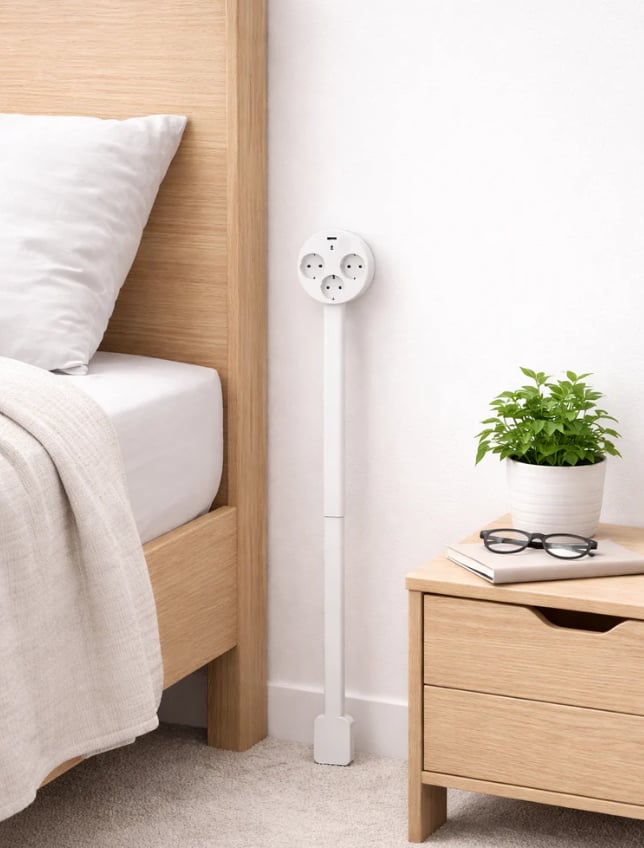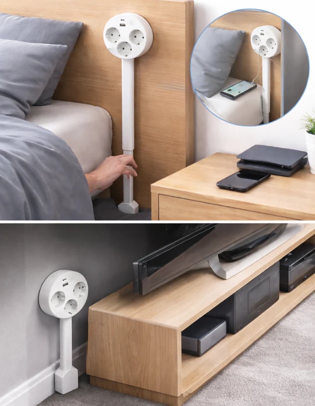 Idealny za łóżkiem, przy biurku i szafce RTV — wszędzie tam, gdzie zwykłe przedłużacze są niewygodne i zajmują za dużo miejsca.
