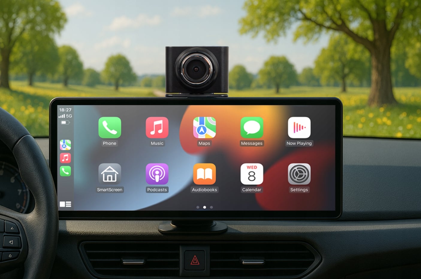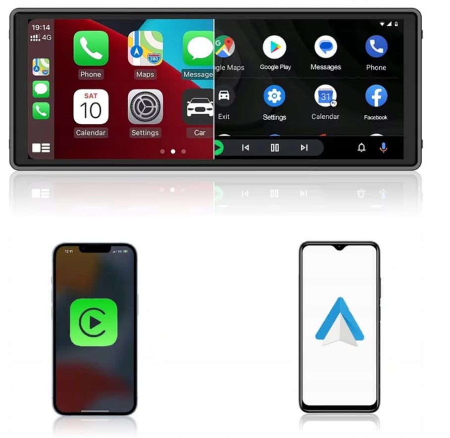 Radio z 10,3-calowym ekranem dotykowym zapewnia wygodną obsługę oraz obsługuje CarPlay i Android Auto. Sterowanie głosowe (Google Assistant/Siri) umożliwia bezpieczne korzystanie z nawigacji, muzyki i połączeń. Funkcja Split Screen pozwala używać dwóch aplikacji jednocześnie. Urządzenie obsługuje odtwarzanie multimediów MP5/MP4/MP3 do 1080P, oferuje Bluetooth do rozmów i streamingu muzyki oraz kamerę cofania zwiększającą bezpieczeństwo parkowania.